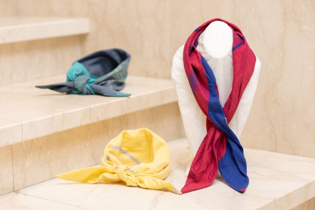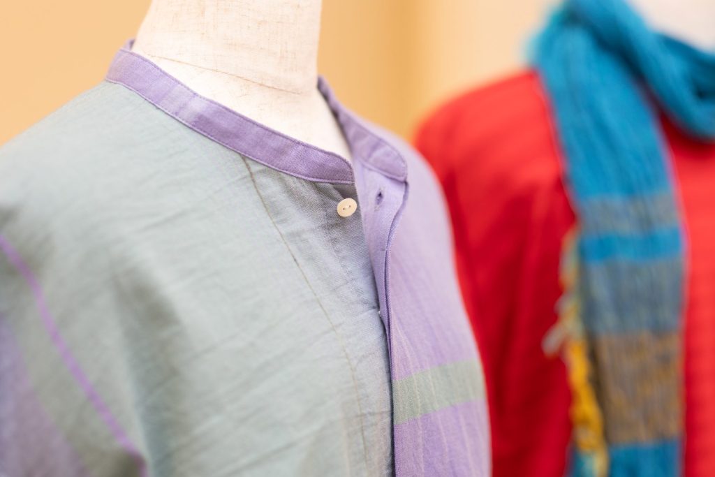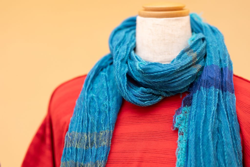 兵庫県西脇市の地場産業である播州織の手法で独自の作品を生み出している『tamaki niime』。一点物のショール、ニット、デニム、ワンピース、トップス、ボトムス、バッグ、帽子、傘、レギンス、ヘアーバンドなど約120アイテム。