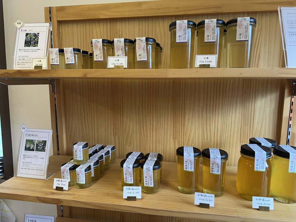 店内には「初夏の森」「初咲」「秋の秋保里山」など、素敵なタイトルがつけられたたくさんの種類の蜂蜜が並べられ、実際に購入ができます。蜂蜜の味わいは甘みのほかにも酸味やほろ苦さ、喉の奥に感じる花の香りなど、実に表情豊かです。