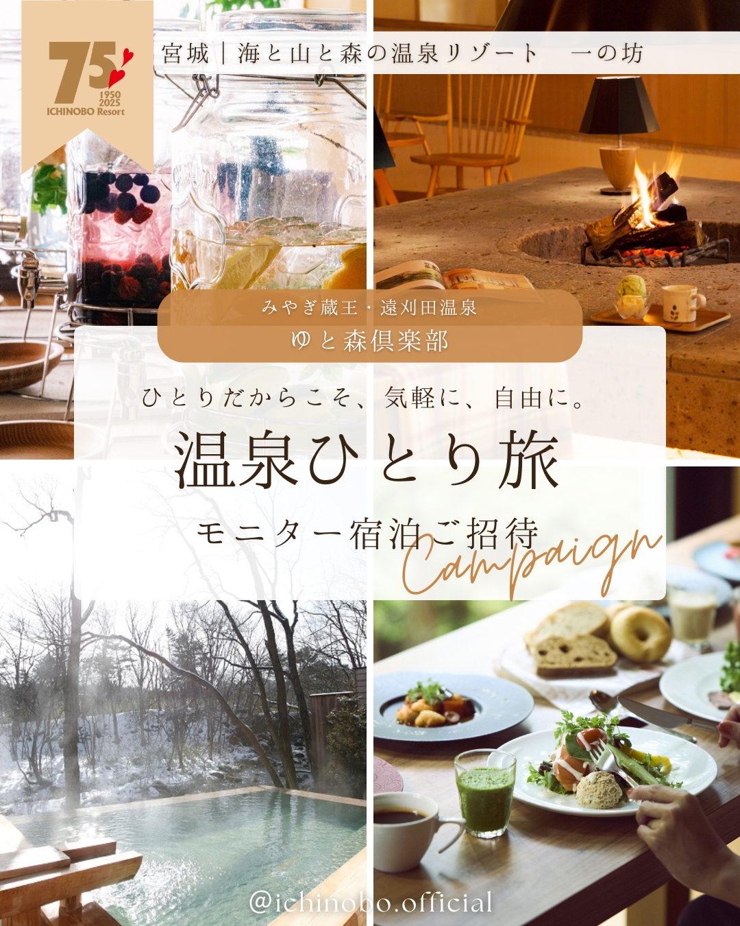 75周年記念 一の坊グループ公式Instagram「温泉ひとり旅」モニター宿泊キャンペーン開催【応募期間:11月16日(日)まで】