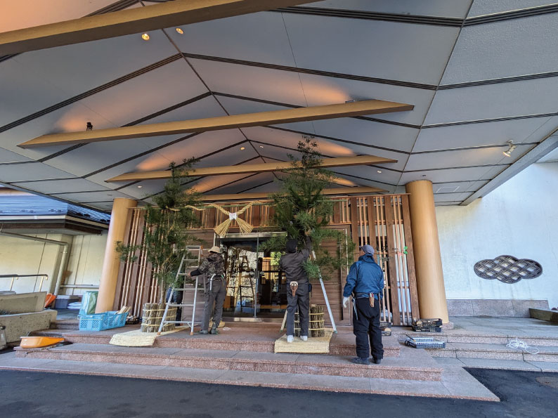 株式会社一の坊(本社/宮城県仙台市 代表取締役 髙橋 弘行/タカハシ ヒロユキ)が運営する仙台・作並温泉 ゆづくしSalon一の坊、松島温泉 松島一の坊では、江戸時代に仙台城下で飾られ、明治以降に急速に数を減らした正月飾り「仙台門松」を飾り、お客様をお迎えいたします。